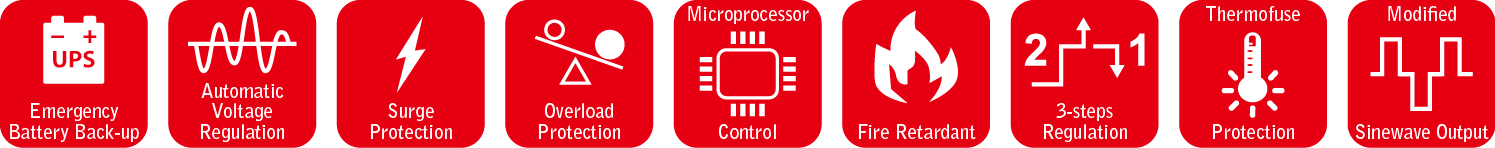 ● Equipped with 2-steps boost & 1-step buck AVR to stabilize output voltage