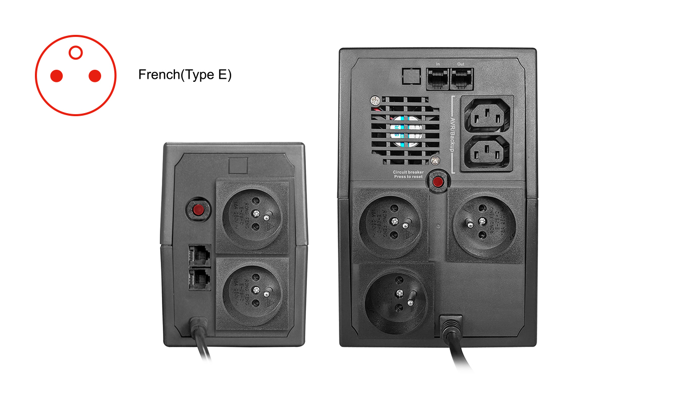 | Plus5E-US800F | 800VA/480W | Tipo de torre | LED | Sí | Sí | Francia(Tipo E) |