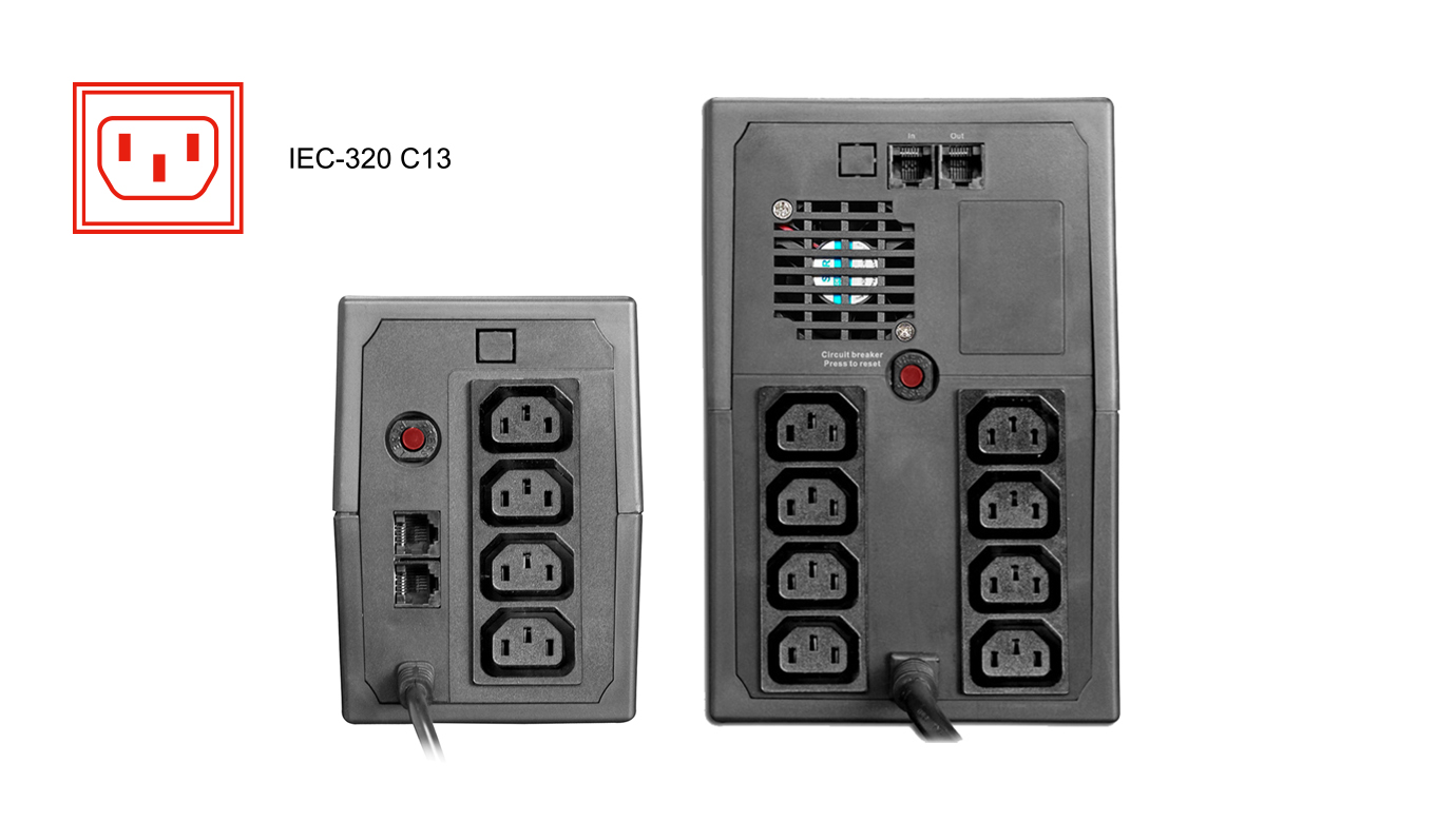 | Plus5E-S800SA | 800VA/480W | Tipo de torre | LED | Sí | No | Sudáfrica(Tipo M) + IEC-320 C13 |