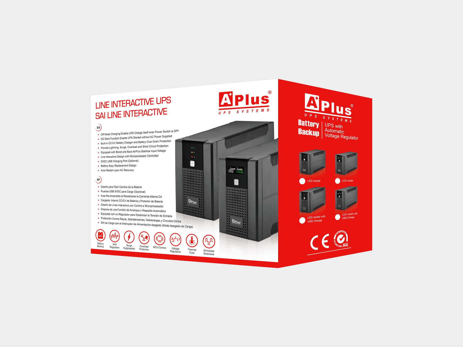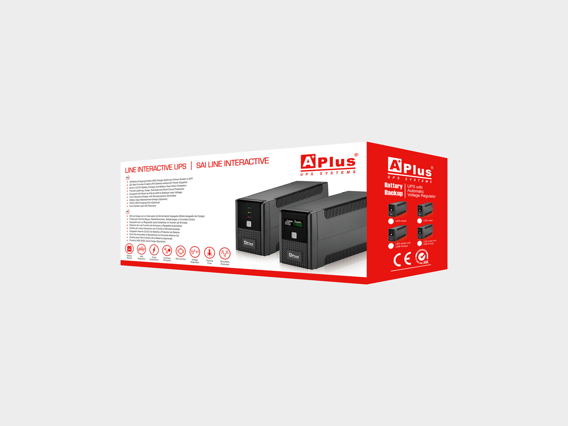 | Plus5L-S800SA | 800VA/480W | Tipo de torre | LCD | Sí | No | Sudáfrica(Tipo M) + IEC-320 C13 |